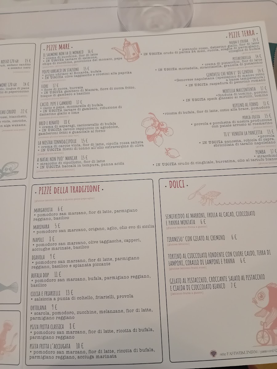 Bred E Renato Pizzamare offers a delightful array of dishes that highlight the essence of Italian cuisine with a special focus on pizza and seafood. The Margherita E Ortolana stands out as a perfectly balanced pizza, combining fresh tomatoes, mozzarella, and a medley of seasonal vegetables that bring a refreshing twist to a classic favorite. For those seeking something unique, the Polpo Con Patate E Mozzarella is a must-try, featuring tender octopus paired with creamy potatoes and mozzarella, creating a rich and satisfying dish that tantalizes the palate. As for dessert, the Tiramisù offers a wonderfully indulgent finish, with layers of espresso-soaked ladyfingers and velvety mascarpone that melt in your mouth. The menu at Bred E Renato Pizzamare showcases the freshness and quality of its ingredients, making each meal a memorable experience.